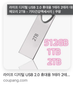 요즘 USB는 2테라짜리도 나온다고 하더라고요 ㅎㅎ