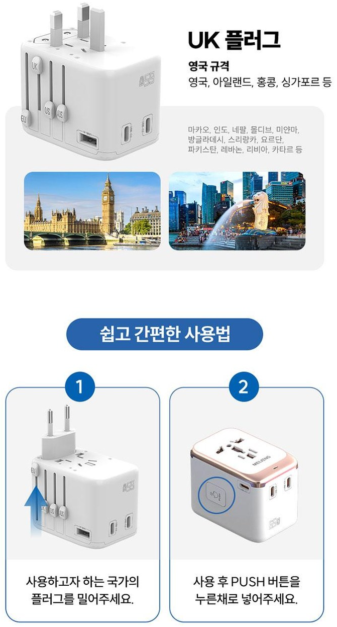 모든 나라의 규격을 모두 가지고 있어 해당 모양만 슥 밀어서 사용하면 됩니다