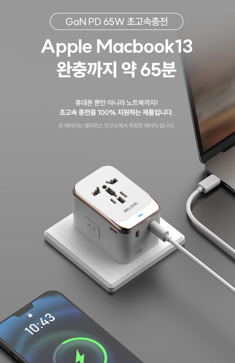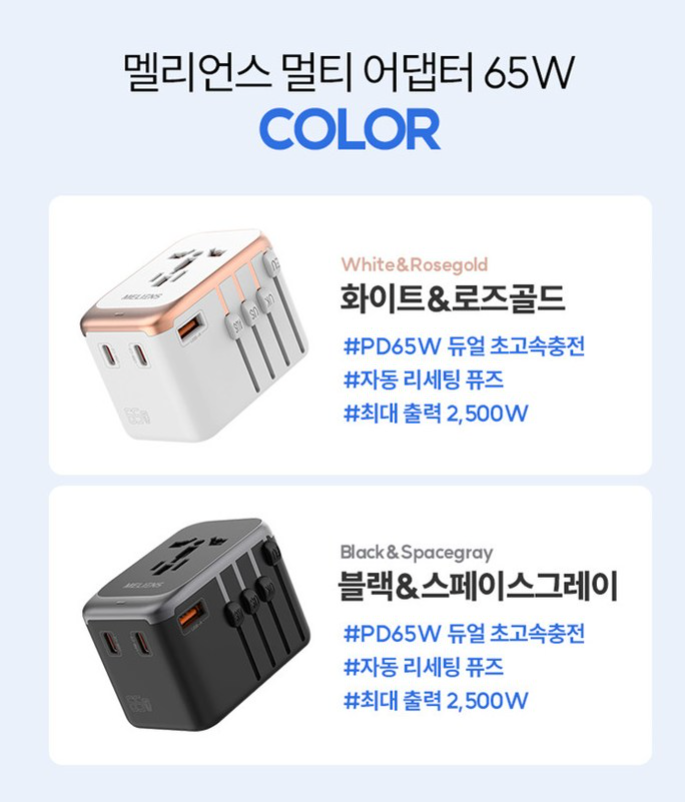 멜리언스 GaN PD65W 해외여행용 듀얼 초고속충전 멀티어댑터, 화이트, 1개 - 플러그/어댑터 | 쿠팡